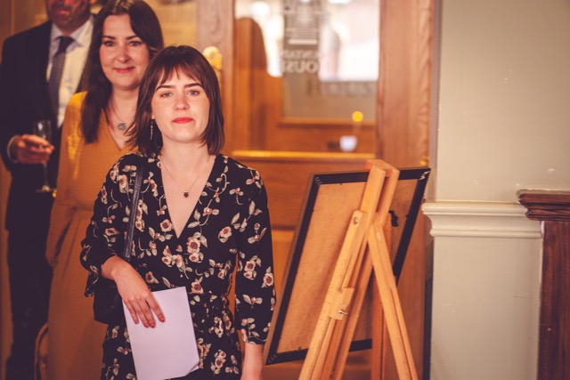 As the guests filed up the stairs – via the bar of course – Siobhan & Mark were able to get a moment alone, together. The venue has a secret lift reserved on the day just for them. Of course we got a photo there too!
